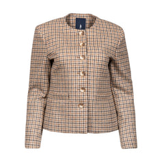 De Annelise Check Jacket biedt een klassieke en comfortabele look, perfect voor elke dag. Met een charmant ruitpatroon en een relaxte fit voel je je altijd op je gemak. De blazer is vervaardigd uit hoogwaardige tweed, wat zorgt voor een aangename en duurzame pasvorm. Dit veelzijdige kledingstuk heeft een elegante ronde kraag en een rij stijlvolle knopen aan de voorzijde, wat een tijdloze uitstraling geeft. Verkrijgbaar in een warme beige en bruine kleur.