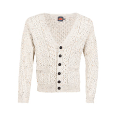 De Cardigan Aran van John Bardale biedt een comfortabele, relaxed fit in een diepblauwe tint. Met een prachtig Aran-patroon en gemaakt van hoogwaardige Merino wol, houdt hij je warm tijdens koele dagen. De stevige knoopsluiting en fijne boordjes geven een klassieke uitstraling. De ademende en zachte Merino wol zorgt voor ultiem comfort en duurzaamheid.