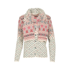Deze prachtige cardigan biedt zowel comfort als stijl met zijn relaxed fit. Gemaakt van een luxe mix van katoen en wol, zorgt het materiaal voor warmte en zachtheid. Het ingewikkelde vlechtpatroon in zachte crèmekleuren met accenten van rood en blauw geeft het kledingstuk een unieke uitstraling. De kraag is royaal en prettig om te dragen, terwijl de subtiele knoopsluiting voor een elegante afwerking zorgt.