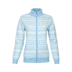 Deze prachtige lichtblauwe jacquard cardigan combineert stijl met comfort. Het delicate patroon voegt net dat beetje extra toe aan je outfit, terwijl de ritssluiting voor gemak zorgt. Gemaakt van 100% lambswool, biedt dit kledingstuk een warme en zachte ervaring voor dagelijks gebruik. De relaxed fit zorgt voor een comfortabele pasvorm die je niet snel zult willen missen.