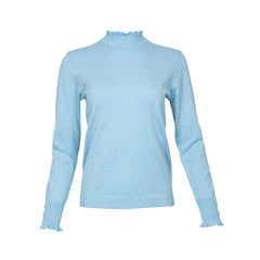 Deze sweater in een zachte, lichtblauwe tint biedt een heerlijk relaxed fit voor optimaal comfort. Gemaakt van een fijne cotton mix, de sweater heeft een subtiel franje detail bij de hals en manchetten, wat een verfijnde touch toevoegt aan het klassieke model. Perfect voor een dagelijkse, zorgeloze stijl.