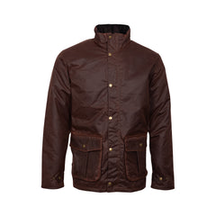 Ervaar comfort en functionaliteit met de Padded waxcoat van George Keys. Deze relaxed fit short waxcoat in klassiek bruin is gemaakt van duurzaam waxmateriaal. Met een stevige knoopsluiting en ruime zakken is hij ideaal voor avonturen in de natuur. De jas biedt een uitstekende bescherming tegen de elementen, perfect voor buitenactiviteiten.