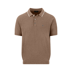 Polo structure cot/linen is een prettig shirt met een natuurlijke uitstraling. Dit bruine kledingstuk is gemaakt van een luchtige mix van linnen en katoen. De stof heeft hierdoor een zichtbare structuur en ademt goed. De polokraag valt op door het fijne witte randje en loopt over in een sluiting met drie lichte knopen. Op de borst is een klein logo geborduurd. De korte mouwen en de onderzijde zijn afgewerkt met ribgebreide boorden die zorgen dat het netjes aansluit.
