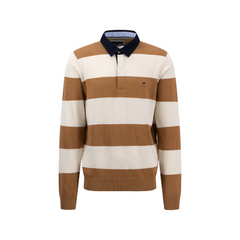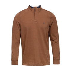 Ontdek het comfort van deze relaxed fit Rugby Shirt in een warme bruine tint. Het is gemaakt van 100% katoen en biedt een zachte, ademende ervaring. Het ontwerp omvat een kwart-rits met een subtiele kraag, waardoor het zowel praktisch als stijlvol is. De boorden aan de mouwen zorgen voor een fijne pasvorm, terwijl het klassieke Fynch Hatton logo een elegant detail toevoegt.