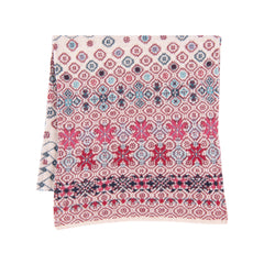 Deze kleurrijke shawl van Dunque heeft een prachtige jacquard print met speelse roze en blauwe tinten. De comfortabele stof, gemaakt van een mix van katoen en wol, zorgt voor een aangename 'relaxed fit' en houdt je warm. Met zijn unieke patroon voegt de shawl net dat beetje extra toe aan je garderobe.