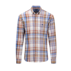 Dit Fynch Hatton overhemd met lange mouwen biedt een relaxed fit en een opvallend groot ruitpatroon. Met een combinatie van blauw en bruine tinten, vangt het shirt elke oogopslag. Gemaakt van 100% katoen, biedt het comfort en ademend vermogen voor een hele dag dragen. De knoopsluiting en de nette kraag geven het een klassieke touch die bij elke buitenactiviteit past.
