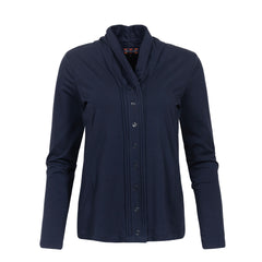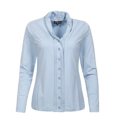 Shirt shawl collar biedt een heerlijke combinatie van comfort en stijl. Dit lichtblauwe, lange mouwen kledingstuk heeft een unieke sjaalkraag en een knoopsluiting die zorgt voor een elegante look. Gemaakt van hoogwaardige cotton stretch, biedt het een zachte en flexibele pasvorm. De subtiele plooien aan de voorkant geven het net dat extra detail.