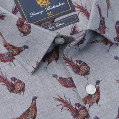 Shirt with pheasants is een relaxed fit die comfort en stijl samenbrengt. Het grijze patroon met kleurrijke fazanten maakt het een uniek kledingstuk. Gemaakt van 100% katoen, biedt dit overhemd ademend comfort voor dagelijks gebruik. De klassieke kraag en knoopsluiting geven het een tijdloze uitstraling, terwijl de lange mouwen het geschikt maken voor elk seizoen.