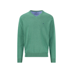 Dompel jezelf onder in het comfort van deze fris groene V-hals trui van Fynch Hatton. Met een relaxed fit en gebreide boorden biedt dit kledingstuk een casual uitstraling zonder in te leveren op draagcomfort. Gemaakt van 100% superzachte katoen, voelt het heerlijk aan op de huid en is het ideaal voor buitenactiviteiten of een rustige dag thuis.