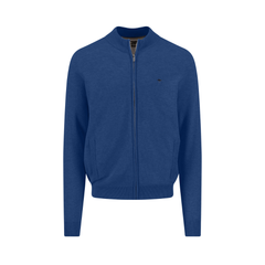 Zip cardigan structure is een comfortabel kledingstuk dat goed van pas komt tijdens frisse dagen. Dit blauwe vest valt op door het fijne structuurpatroon in de stof en de stevige ritssluiting die doorloopt in de opstaande kraag. De ribgebreide boorden aan de mouwen en de onderkant zorgen voor een goede aansluiting. Daarnaast heeft het vest twee handige steekzakken en een subtiel logo op de borst. Het materiaal van 100% katoen voelt zacht aan en is ademend.